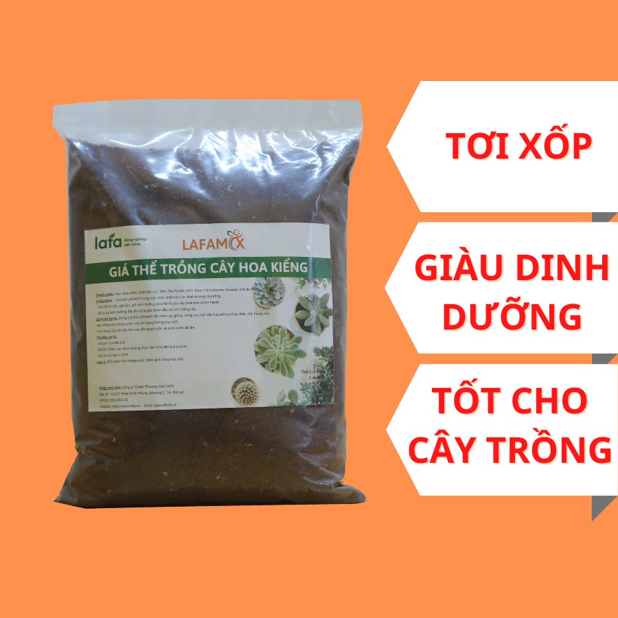 Giới thiệu Đất trồng cây hoa kiểng LAFAMIX tơi xốp thoát nước tốt, cho cây trồng phát triển nhanh không bị đọng nước trong chậu