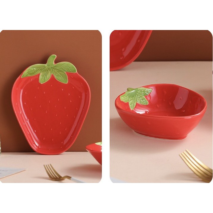Nhà cửa & Đời sống > Bộ đồ bàn ăn > Tô || Bộ dâu 3 món hàng gốm sứ decor siêu đáng yêuCòn hàng