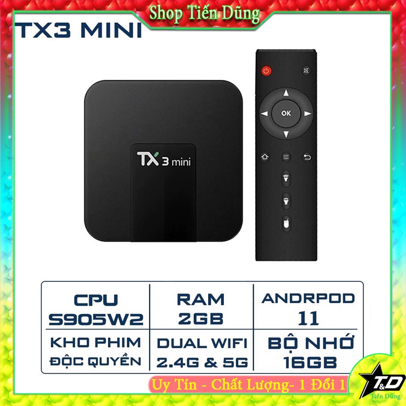 Đầu Android tv box TX3 Mini loại RAM 2G + S905W2, Rom 16G, wifi 2.4gh, sủ dụng phân mền ATV 11 bản mới nhất 2022, điều khiển giọng nói.👉Android Tv Box TX3 Mini sản phẩm đáng mua nhất trong phân khúc giá rẻ.