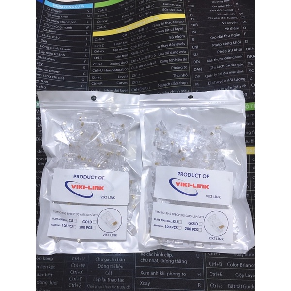 Giới thiệu Đầu Bấm Dây Mạng,Hạt Bấm Dây Mạng VIKI-LINK Cat 5E Túi 100 Hạt Chân Đồng Chất Lượng Cao
