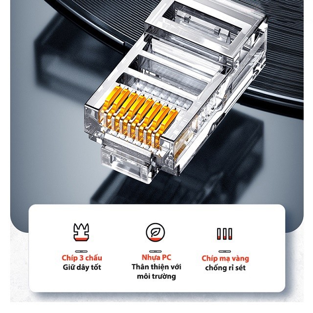 Máy tính & Laptop > Thiết Bị Mạng > Bộ chia mạng || Đầu bấm hạt mạng Cat 6 trong suốt UGREEN NW120Còn hàng