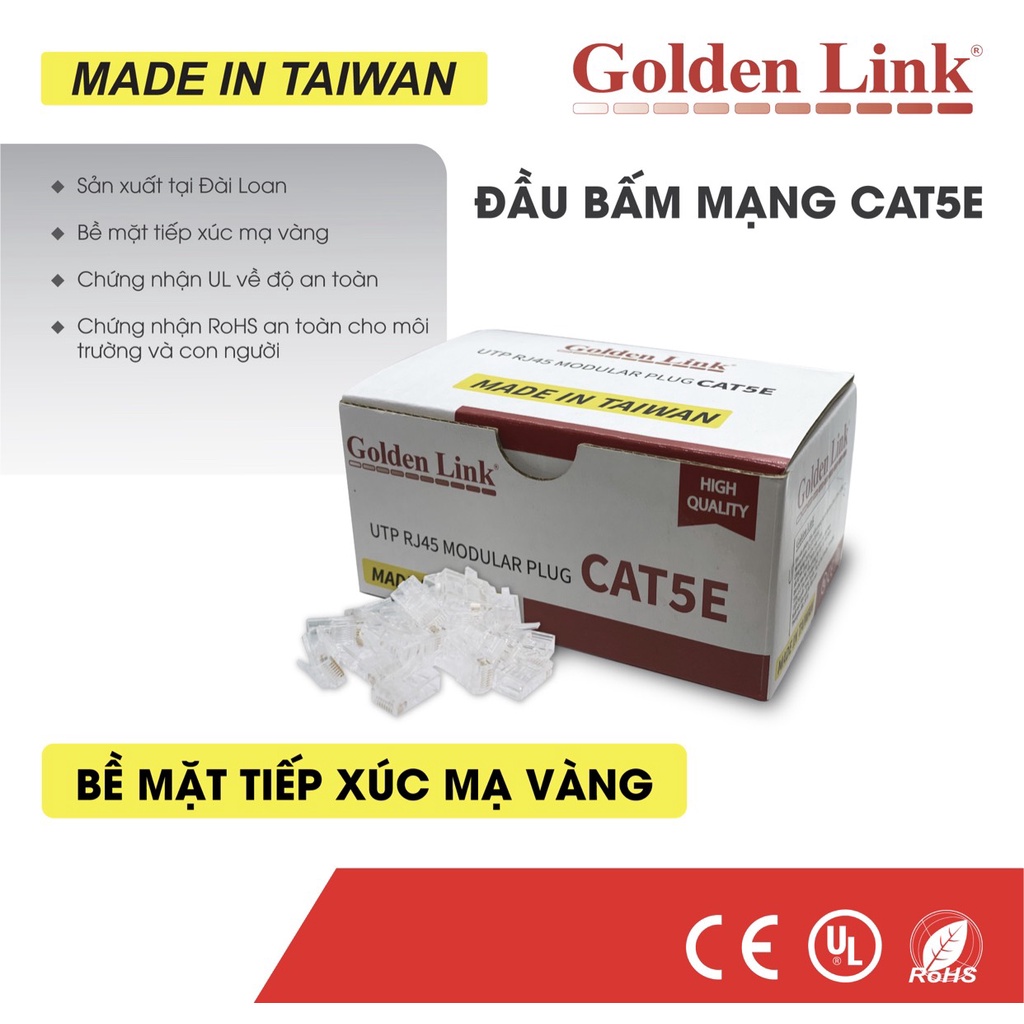 ĐẦU BẤM MẠNG GOLDEN LINK RJ45 UTP CAT5E – MADE IN TAIWAN- Hàng chính hãng