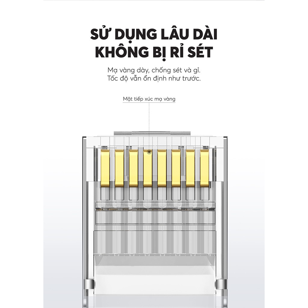 TÊN SẢN PHẨM: Đầu bấm mạng RJ45 UGREEN NW111 cho dây CAT6, bọc inox chống nhiễu📌 Thông tin sản phẩm:
