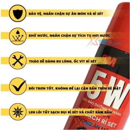 Dầu Bảo Dưỡng Đa Năng Bôi Trơn, Tẩy Sạch Rỉ Sét, Chống Ăn Mòn 3M 5-WỨng Dụng Của Dầu Bảo Dưỡng Đa Năng: