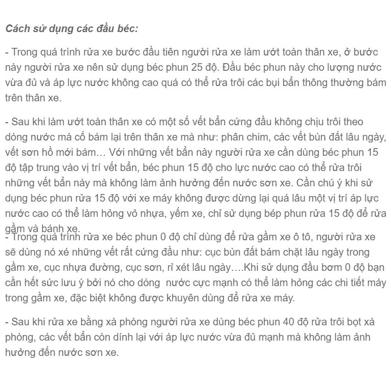 Béc phun có khớp nối 1/4 inchCác loại béc phun:0 độ, 15 độ, 25 độ, 40 độ, 60 độ (xà phòng)