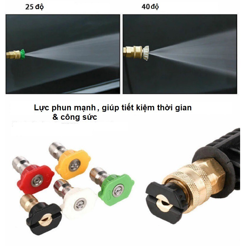 Nhà cửa & Đời sống > Dụng cụ & Thiết bị tiện ích > Dụng cụ > Máy rửa áp lực nước || Đầu béc các góc gắn sung xịt rửa của máy rửa xe áp lực cao - khớp nối nhanh 1/4 inchCòn hàng