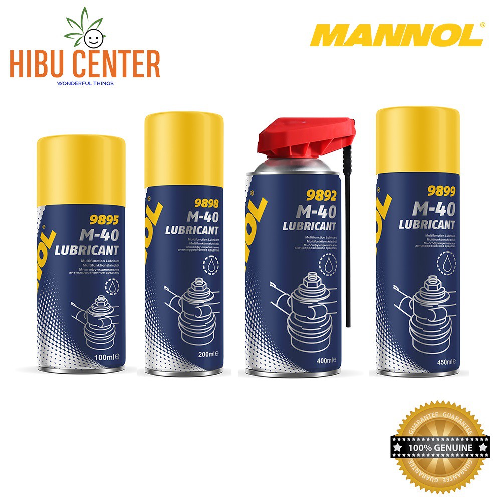 Dầu Bôi Trơn, Chống Gỉ, Bảo Vệ Kim Loại, Đa Năng MANNOL 9895 – 100ML | 9898 – 200ML | 9892 – 400ML | 9899 – 450ML M-40 Lubricant (smart), Hàng Đức Chính Hãng – HIBUCENTERMANNOL M-40 Lubricant là chất bôi trơn dạng xịt đa năng (thẩm thấu, làm sạch, chống ăn mòn, độ ẩm - dịch chuyển, chống rít, v.v.) - một chất tương tự của WD-40. Nó có đặc tính bôi trơn và bảo vệ độc đáo và có nhiều ứng dụng. Lý tưởng để sử dụng chuyên nghiệp và gia đình. Nó là một hỗn hợp dầu và dung môi hoạt tính thẩm thấu nhanh có hiệu quả cao.