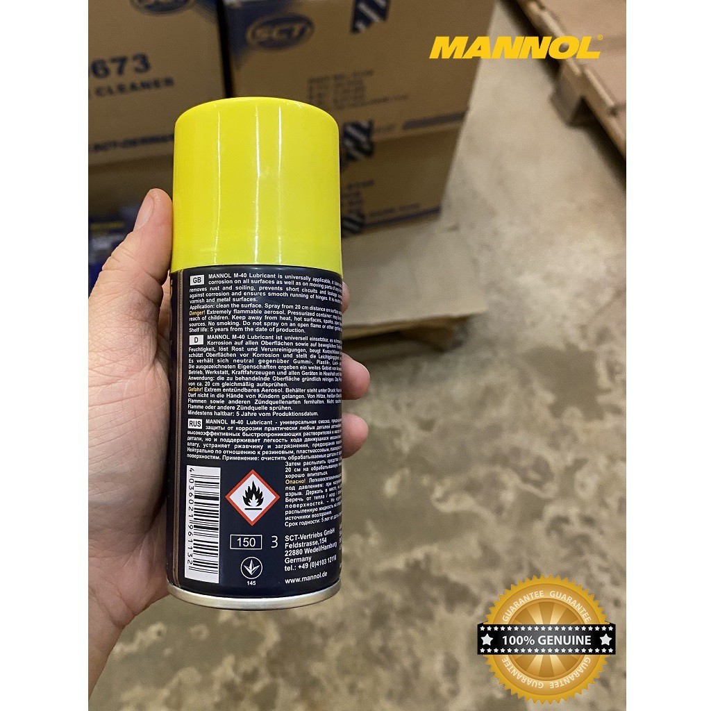 Dầu Bôi Trơn, Chống Gỉ, Bảo Vệ Kim Loại, Đa Năng MANNOL 9895 M-40 Lubricant (smart) 100ML Multifunction LubricantMANNOL M-40 Lubricant là chất bôi trơn dạng xịt đa năng (thẩm thấu, làm sạch, chống ăn mòn, độ ẩm - dịch chuyển, chống rít, v.v.) - một chất tương tự của WD-40. Nó có đặc tính bôi trơn và bảo vệ độc đáo và có nhiều ứng dụng. Lý tưởng để sử dụng chuyên nghiệp và gia đình. Nó là một hỗn hợp dầu và dung môi hoạt tính thẩm thấu nhanh có hiệu quả cao.