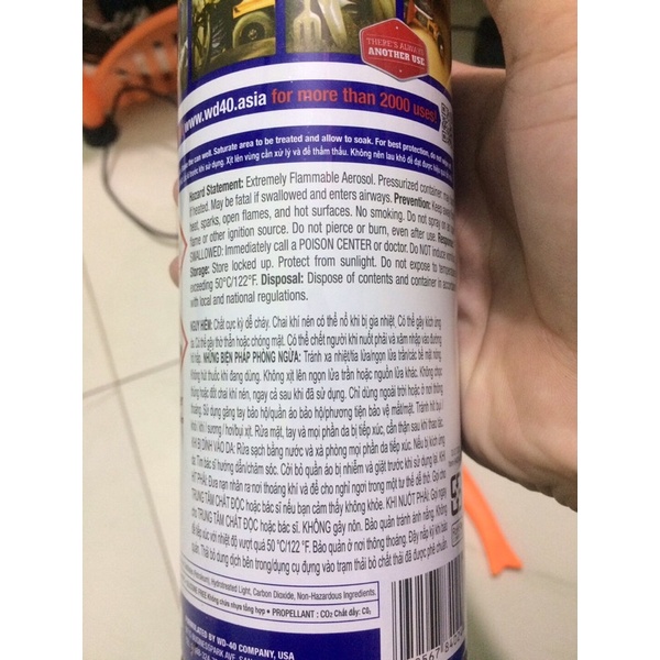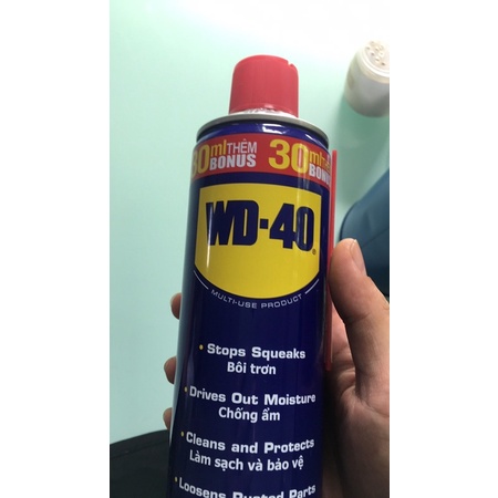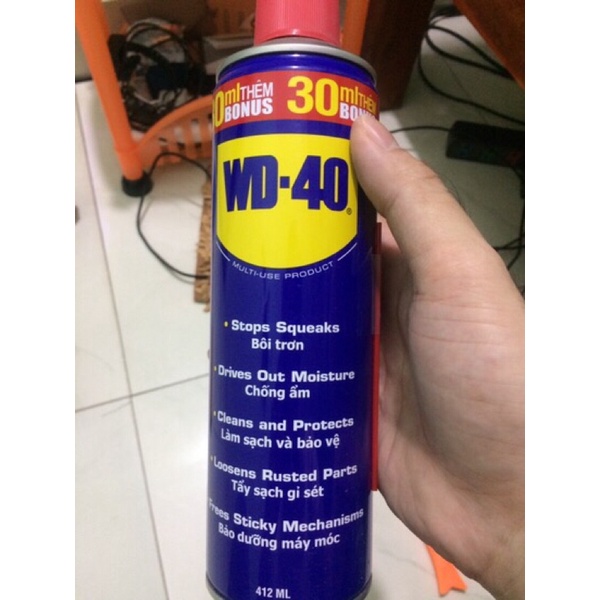 DẦU CHỐNG RỈ SÉT ĐA NĂNG WD-40 412ML- Dầu chống rỉ đa năng WD-40 là sản phẩm dầu chống rỉ sét công nghệ cao hàng đầu của Mỹ, được sử dụng rộng rãi trong ngành công nghiệp dầu-khí, quân đội, hàng hải, nhà xưởng, khu công nghiệp, phương tiện vận chuyển, viện nghiên cứu, nhà máy, gia đình, v.v...