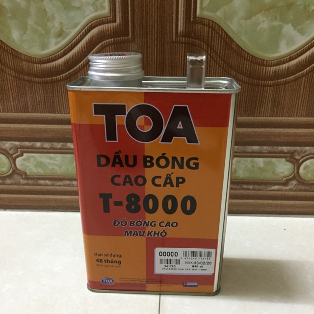 +Dầu bóng cao cấp TOA Varnish T-8000 dùng cho nội thất và ngoại thất với độ bóng cao- Công dụng: Được sử dụng cho những công trình gỗ tôn nét đẹp tự nhiên của sớ gỗ, vân gỗ là yếu tố quan trọng như: cửa, khung cửa, bảng hiệu gỗ, tủ... * +Hướng dẫn sử dụng: Chổi hoặc súng phun