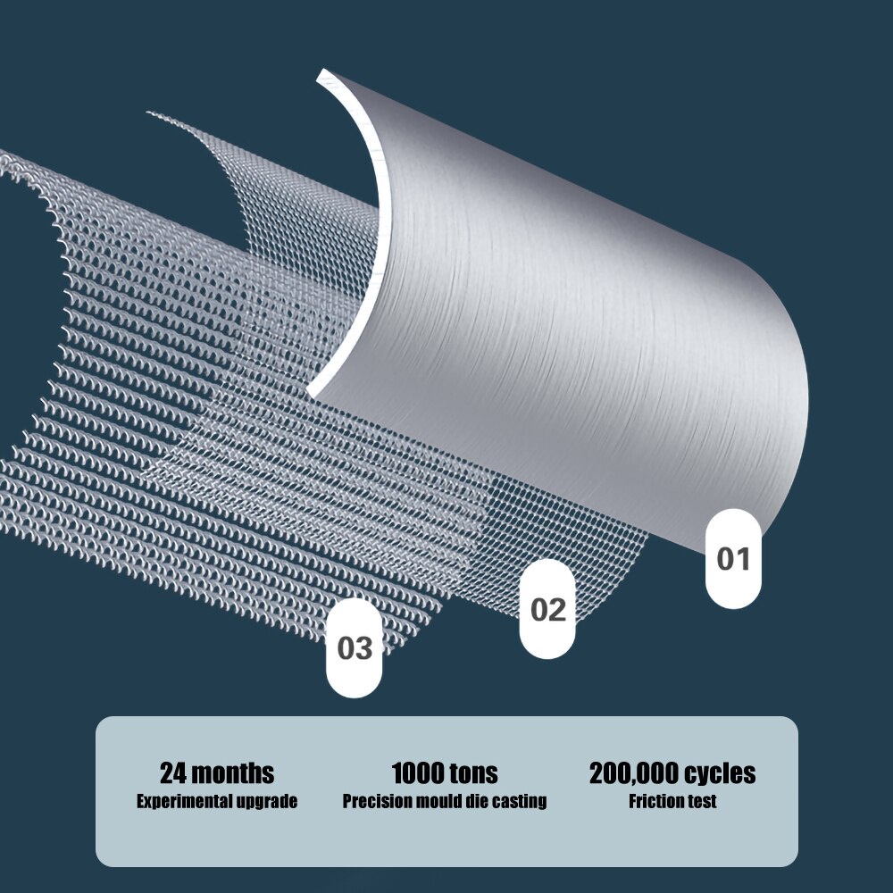 After 24 months of repeated tests and experiments, more than 5 kinds of material mixing formulas are used, supplemented by microcrystalline particles, and the materials are broken and stirred for many times to ensure that the materials are tightly connected. The thousand-ton precision mold is used for one-time die-casting. Greatly improve the wear resistance, so that the super crystal shield nib can withstand more than 200,000 times of friction test.