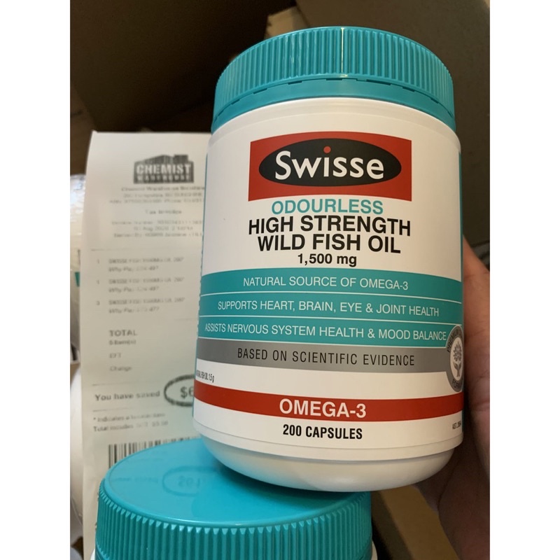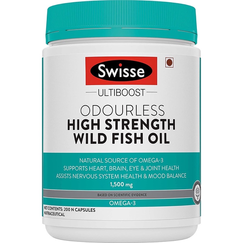 Dầu Cá biển 1500mg - Không Mùi Swisse có chứa một nguồn cao cấp của omega-3 có lợi cho tim, não, khớp và mắt cũng như duy trì sức khỏe nói chung.❤Swisse Ultiboost Odourless High Strength Wild Fish Oil có chứa các axit chất lượng cao omega-3 axit béo, EPA và DHA, có nguồn gốc từ những loại cá bơi tự do ở Thái Bình Dương.