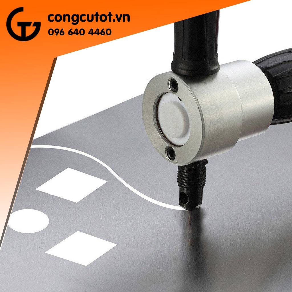 Đầu cắt tôn hộp sắt là một sản phẩm chuyên nghiệp bao gồm đầu cắt tôn và các chi tiết dự phòng, cho phép bạn biến chiếc máy khoan trở thành một dụng cụ cắt tôn, cắt tấm kim loại rất lợi hạiThông thường, để cắt tôn ta có thể dùng kéo cắt tôn hoặc máy cắt cầm tay, với sự ra đời của bộ kít cắt tôn YT-160A, ta có thể sử dụng máy khoan để cắt tôn.