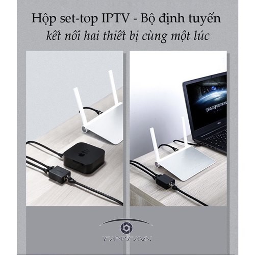 Đầu chia LAN RJ45 1 ra 2 Ugreen 50923, giải pháp hiệu quả để giải quyết vấn đề thiếu cổng kết nối RJ45 cho hộ gia đình, văn phòng…Với những tính năng ưu việt vượt trội, ổn định tín hiệu ở khoách cách đến 100m dây, hỗ trợ cùng lúc 2 thiết bị chức năng khác nhau như PC + Router, IPTV Set-top Box + Router…
