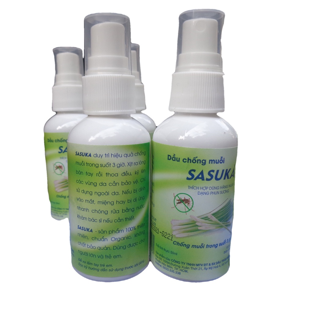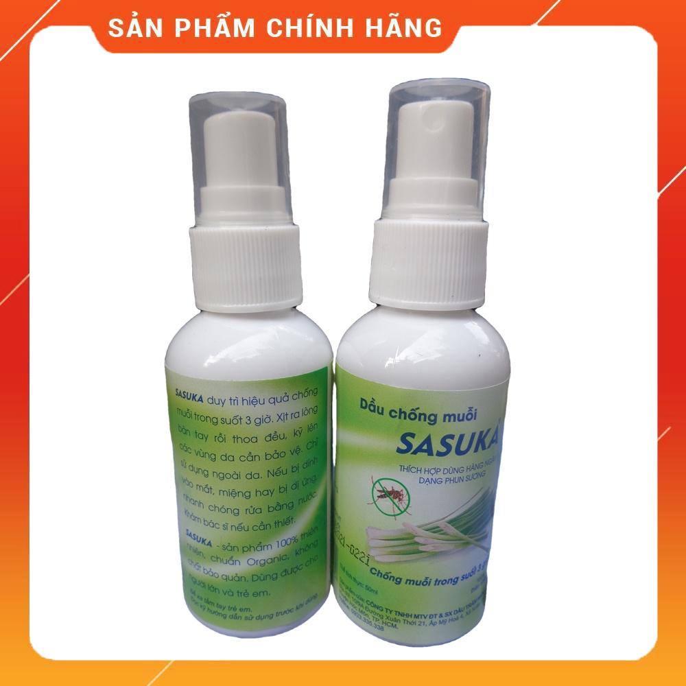 Dầu chống muỗi Sasuka duy trì hiệu quả chống muỗi trong suốt 3hSản phẩm Dầu chống muối Sasuka được chiết xuất từ tinh dầu sả tự nhiên, chuẩn Organic có tác dụng bảo vệ làn da của bạn tránh bị muỗi đốt. Sản phẩm có thể sử dụng được với cả người lớn và trẻ em.
