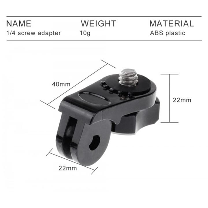 - Công dụng : Chuyển chân GoPro sang ren chuẩn 1/4inch để phù hợp vặn các loại máy ảnh, action cam, đầu kẹp điện thoại.....