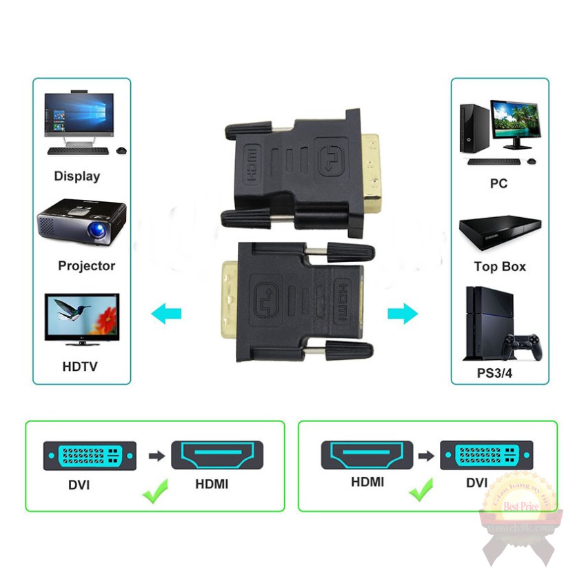 Máy tính & Laptop > Phụ Kiện Máy Tính > Bộ chia cổng USB & Đọc thẻ nhớ || Đầu chuyển cổng DVI 24+1 sang HDMI hai chiều đa năng màu đenCòn hàng