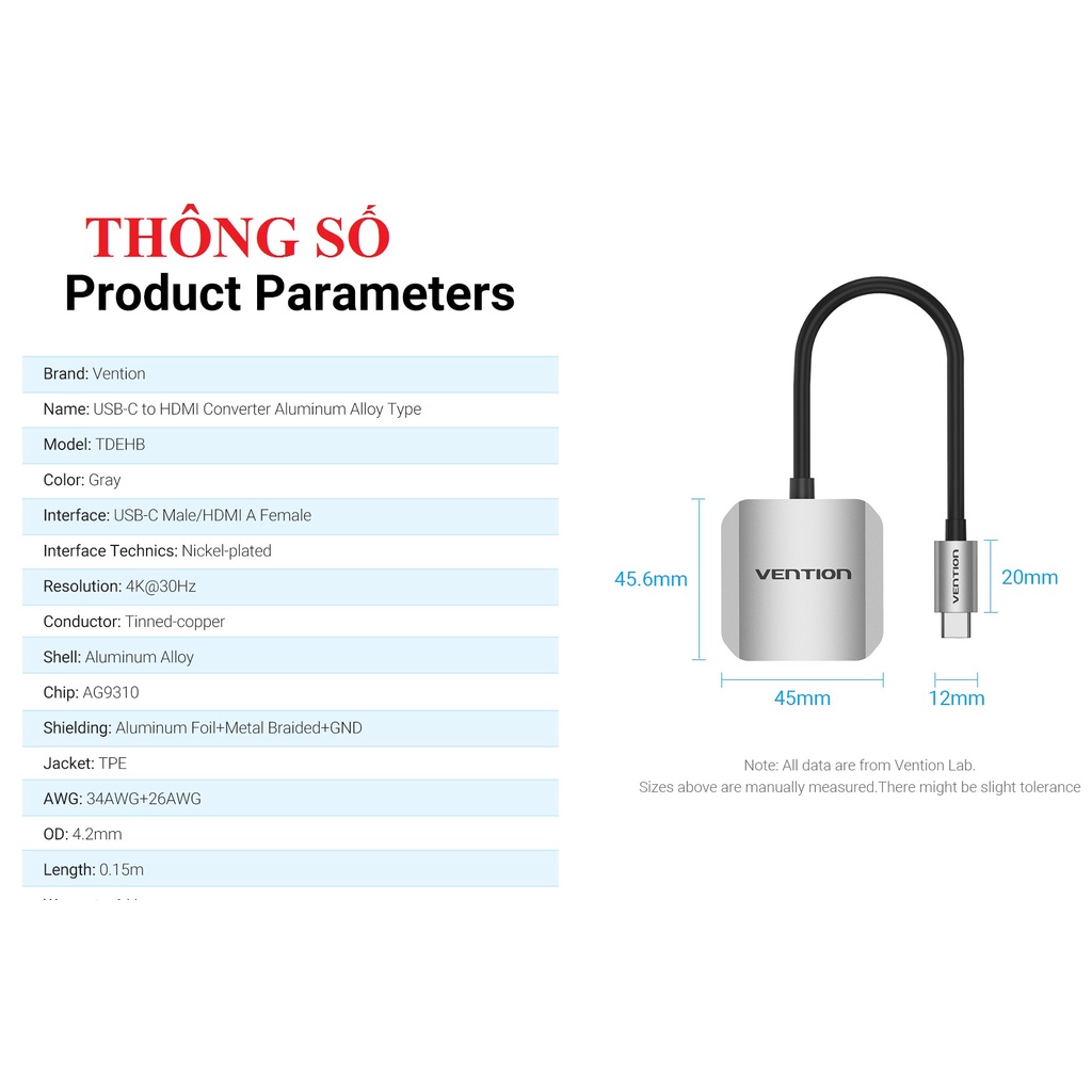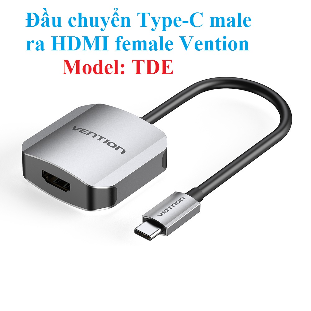 |Đầu chuyển cổng type-C dương ra cổng HDMI âm thương hiệu Vention, Model: TDE-Tên sản phẩm: USB-C to HDMI Converter Aluminum Alloy Type