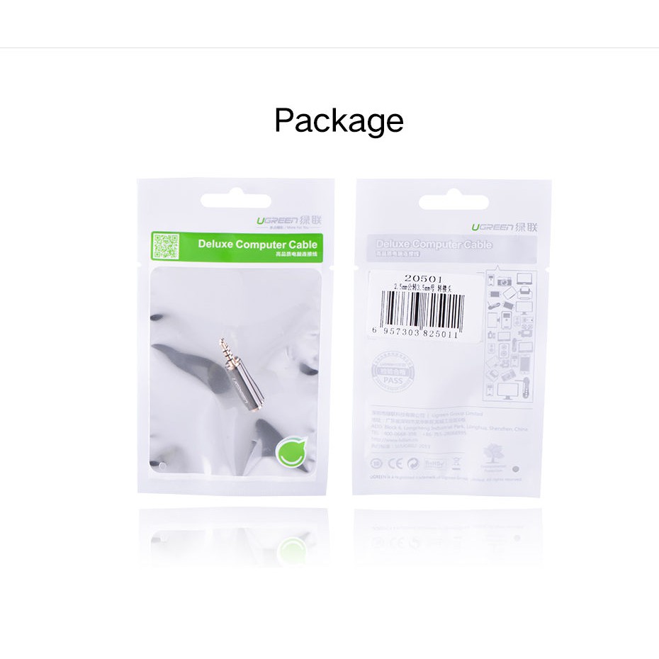 Máy tính & Laptop > Thiết Bị Lưu Trữ > USB & OTG || Đầu chuyển đổi 3.5mm cái sang 2.5mm đực, dài 25mm UGREEN 20501Còn hàng