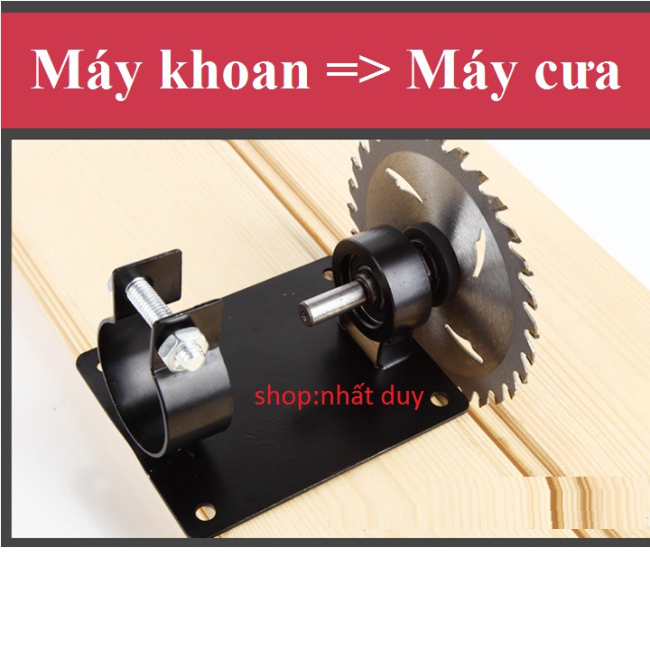 Phụ kiện máy khoan chuyển đổi thành máy cắt, máy mài bàn (như hình) là một trong những sản phẩm thuộc dòng diy, chuyển đổi chức năng khoan rất hiệu quả. Công dụng chủ yếu là dùng bắt khoan vào phụ kiện để mở rộng chức năng cắt và mài.
