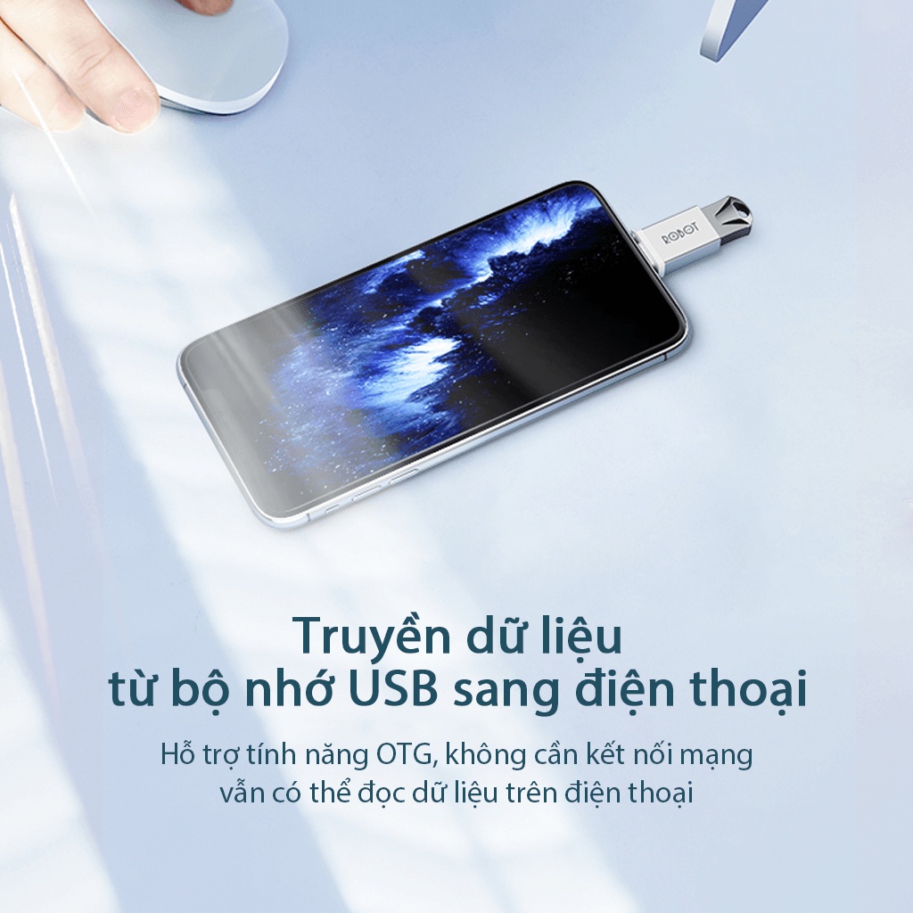 ĐẦU CHUYỂN ĐỔI OTG CỔNG TYPE-C SANG USB 3.0 ROBOT RT-OTG04 - CHẤT LIỆU VỎ KIM LOẠISản phẩm chính hãng ROBOT