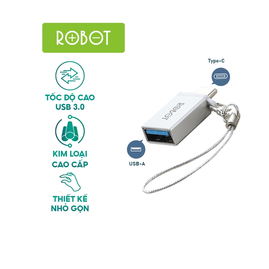 Đầu Chuyển Đổi OTG Cổng Type-C Sang USB 3.0 ROBOT RT-OTG04 - Chất Liệu Vỏ Kim LoạiĐẦU CHUYỂN ĐỔI OTG CỔNG TYPE-C SANG USB 3.0 ROBOT RT-OTG04 - CHẤT LIỆU VỎ KIM LOẠI