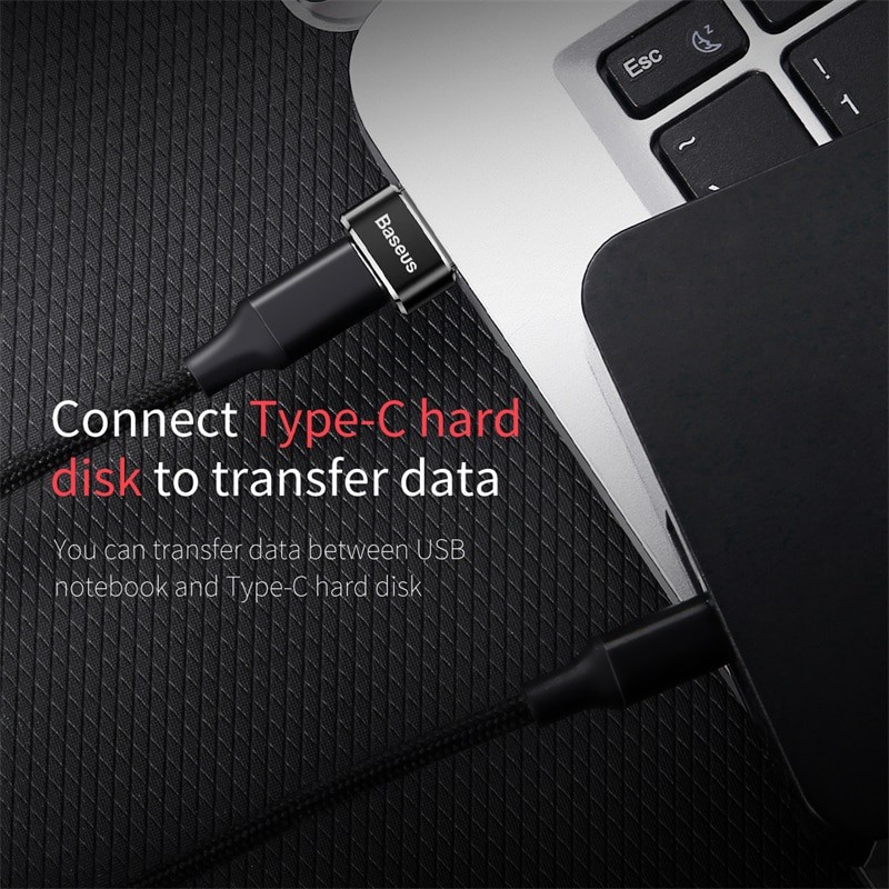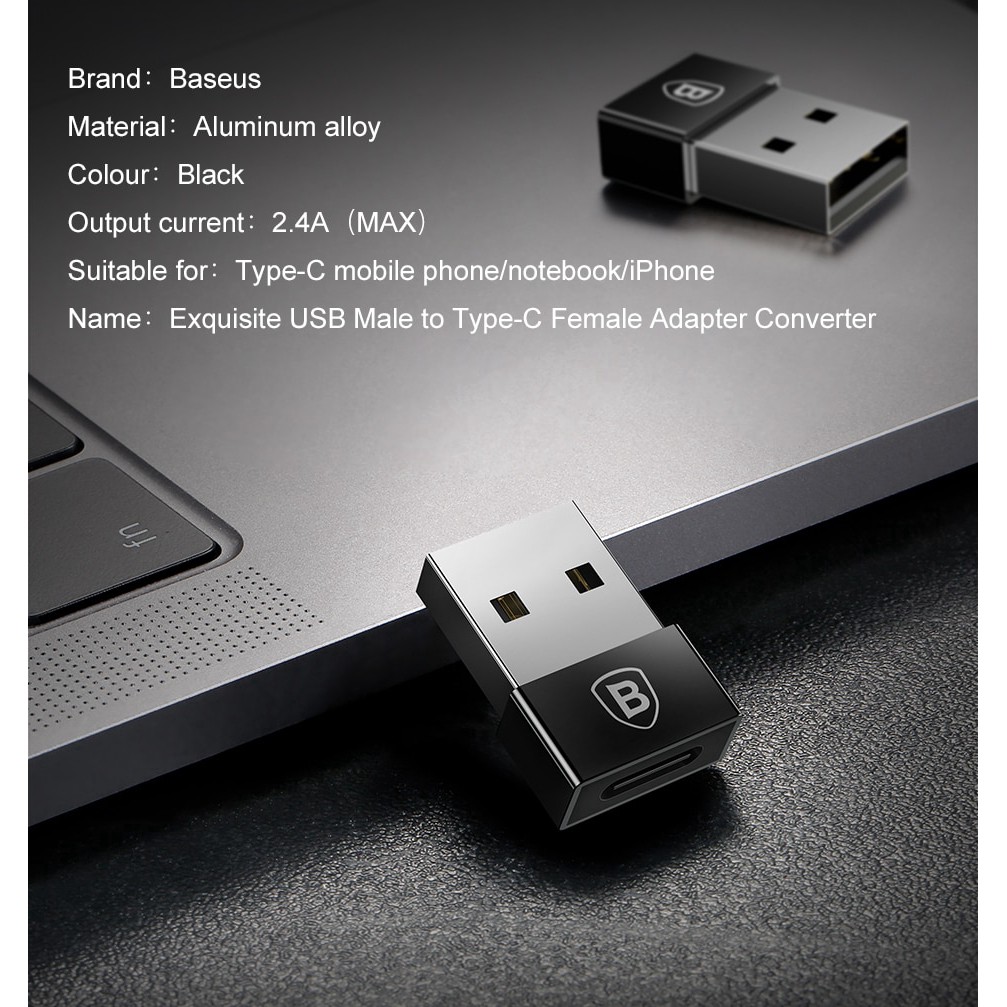 Đầu chuyển đổi OTG từ cổng USB thành USB Type C Baseus cho Samsung S10 Xiaomi Mi - Nhỏ gọn - Tiện lợi - Hàng chính hãng