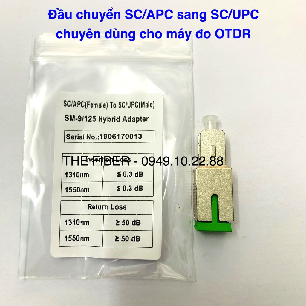 Đầu chuyển đổi SC/APC sang SC/UPC thích hợp để dùng cho các máy đo quang OTDR hoặc máy đo suy hao quang, máy đo chiều dài cáp quang
