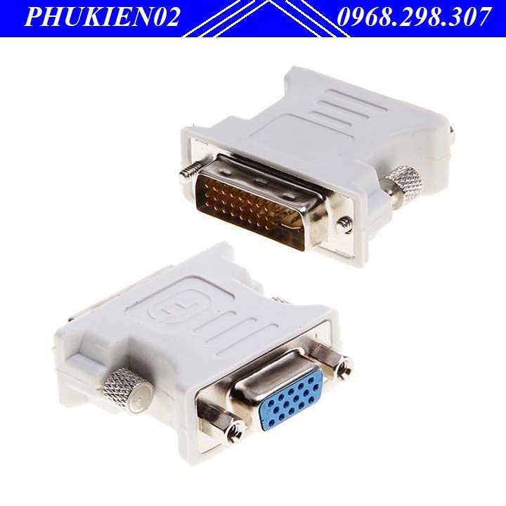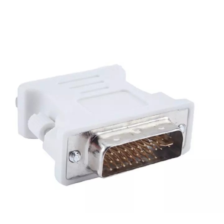 Đây là tín hiệu DVI-I Dual Link bao gồm cả Digital và Analog (tín hiệu tương tự). Bạn đang dùng chiếc card đồ hoạ máy tính có cổng DVI 24+5 thì có thể dễ dàng chuyển đổi ra cổng VGA qua adapter thông thường.VGA Cổng và cáp VGA: tín hiệu Analog mà thôi, chuẩn này cũ nhất. Chuẩn kết nối VGA thường có màu xanh blue, 3 hàng chân với tổng cộng là 15 pin.Chức năng – Dùng để chuyển đổi từ cổng DVI sang cổng VGA. DVI-I (Dual Link) 24+5pin Male —> VGA (D-Sub) 15pin Female – Chất lượng hình ảnh rõ đẹp không bị nhiễu – DVI chuẩn dương sang VGA chuẩn âm cho LCD, CRT, HDTV, PC – Hỗ trợ cho màn hình LCD, HDTV, máy chiếu, DVD và các thiết bị giải trí gia đình khác – Kết nối VGA, màn hình SVGA để cắm DVI – Truyền dẫn tín hiệu chất lượng cao – Chân cắm DVI 24+5 mạ vàng cho chất lượng tín hiệu truyền cao Để tránh đặt nhầm sản phẩm, quý khách vui lòng xem kỹ cổng DVI của card màn hình.Dùng chuyển đổi từ cổng DVI sang cổng VGAChất lượng hình ảnh cực rõ đẹp không bị nhiễu,Sử dụng cho các dòng Máy PC có cổng DVI không có cổng VGA kết nối tới Tivi LCD, Màn hình PC, Máy chiếu..