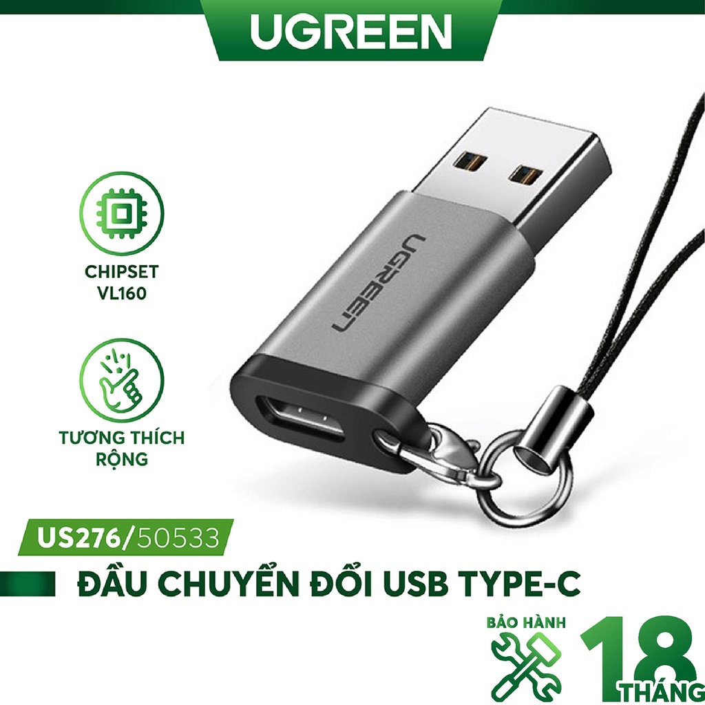 Đầu chuyển đổi USB-C sang USB 3.0, dùng cho PC, laptop, macbook, điện thoại... UGREEN US204, US276