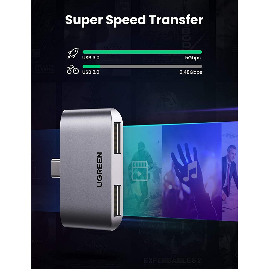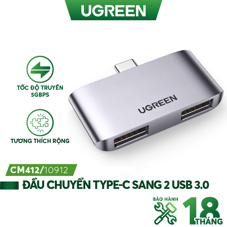 Giới thiệu Đầu chuyển đổi USB type C sang 2 cổng USB3.0 UGREEN CM412 10912