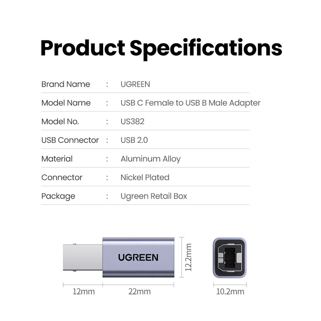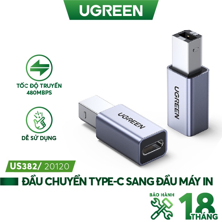 Giới thiệu Đầu chuyển đổi USB type C sang cổng máy in USB B UGREEN US382 20120 - Hàng phân phối chính hãng - Bảo hành 18 tháng