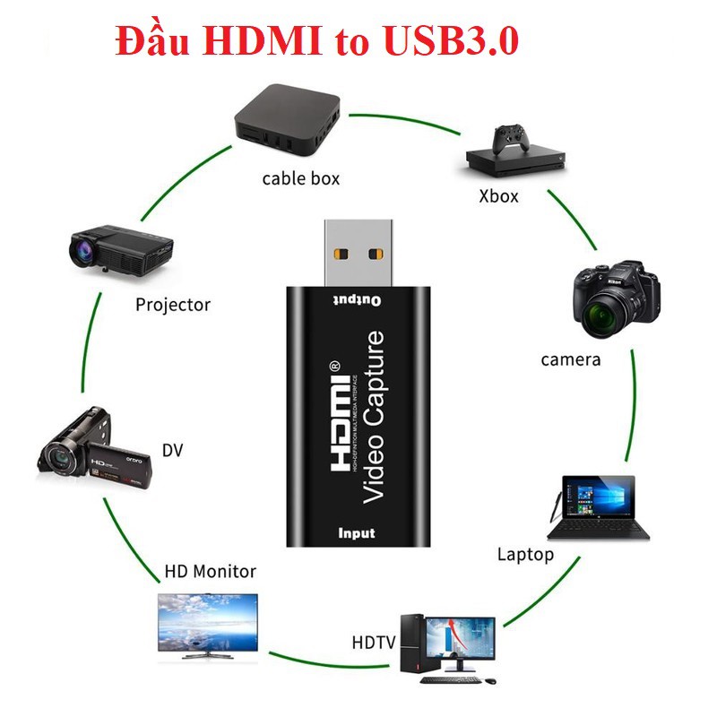 Máy tính & Laptop > Thiết Bị Lưu Trữ > USB & OTG || Đầu chuyển HDMI vào laptop, pc qua cổng USB, Video capture - Đầu ghi hình HDMI - Usb 3.0 Tặng 1 đèn led cắm cổng USBCòn hàng