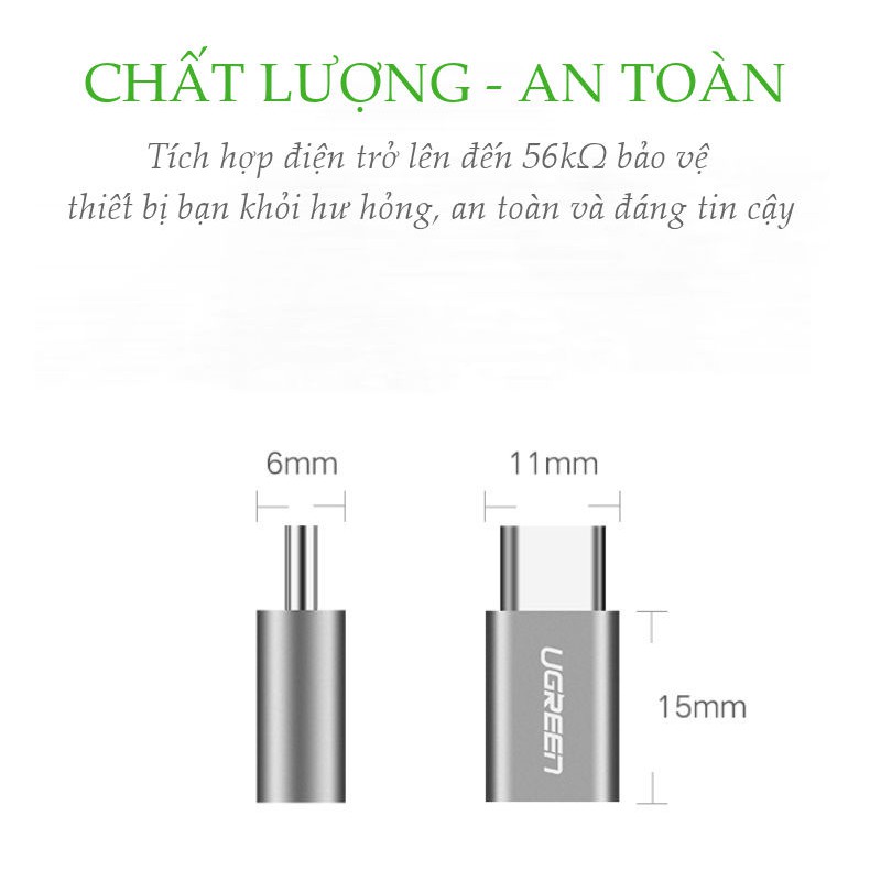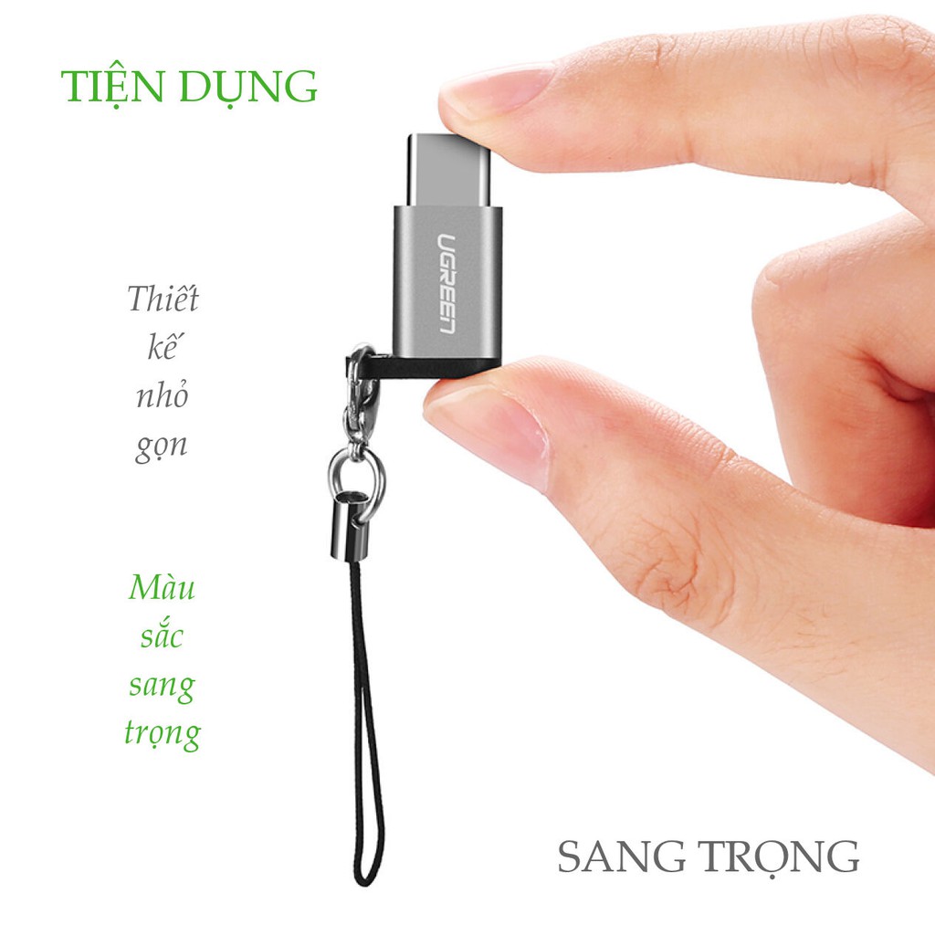 Máy tính & Laptop > Thiết Bị Lưu Trữ > USB & OTG || Đầu chuyển Micro USB cái sang USB-Type C đực vỏ nhôm UGREEN US189Còn hàng