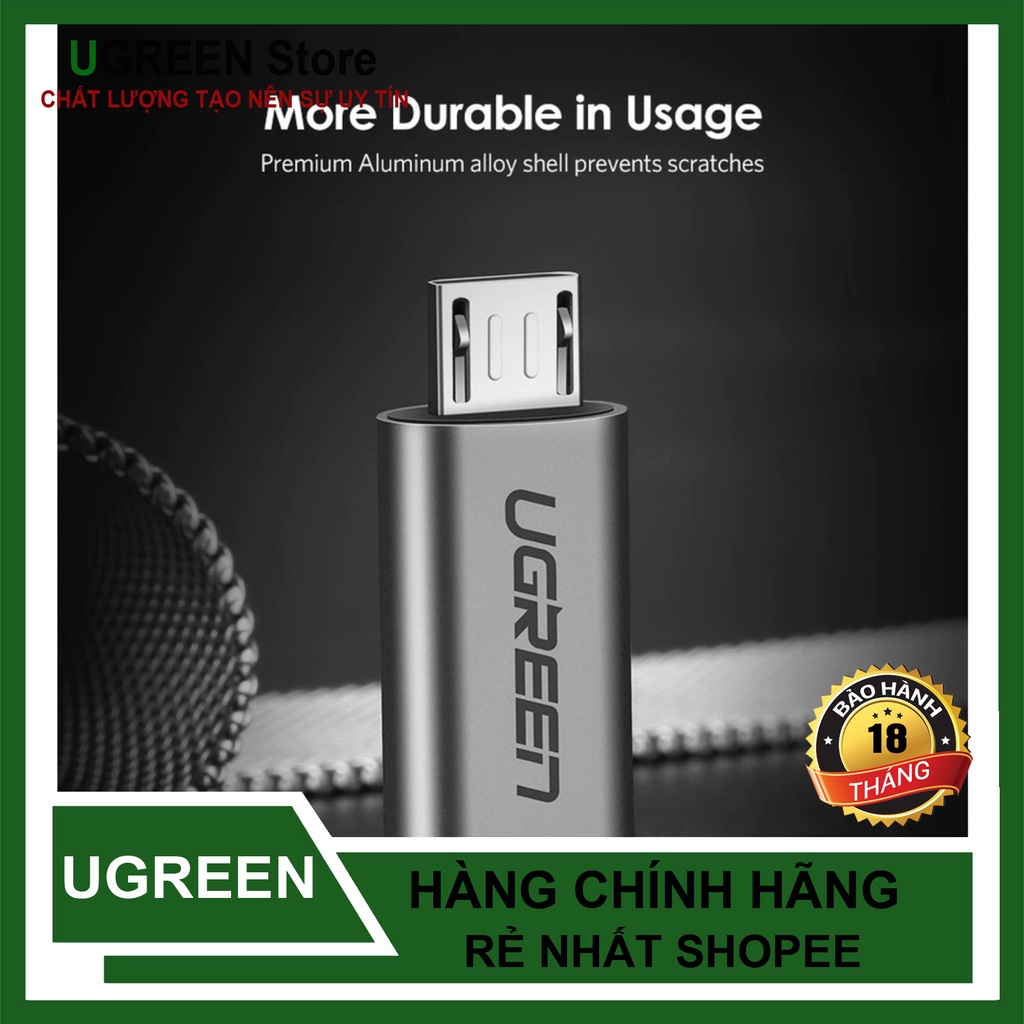 - Đầu chuyển đổi Micro USB và USB-C Ugreen US282 có thiết kế nhỏ gọn dạng móc treo tiện lợi, thiết kế vỏ nhôm cao cấp mang đến độ bền tối ưu. Các khe cắm vừa khít chắc chắn. Ugreen 50590 là phụ kiện tuyệt vời cho bộ sưu tập của bạn.