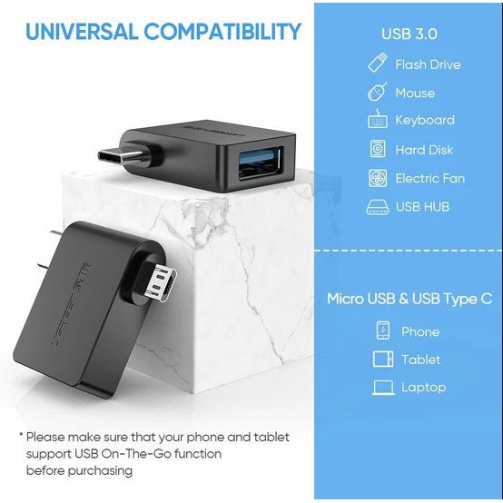 Giới thiệu Đầu chuyển Micro USB / USB-C OTG sang USB 3.0 Ugreen 30453