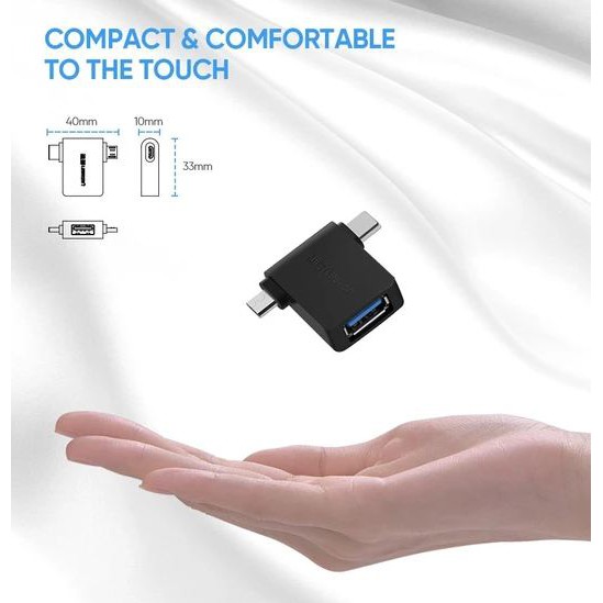 • OTG Ugreen 30453 là phụ kiện giúp kết nối điện thoại, laptop, máy tính bảng của bạn với các thiết bị ngoại vi khác qua cổng USB 3.0, tốc độ truyền tải tín hiệu lên đến 5Gbps. Ugreen 30453 hỗ trợ cả cổng Micro USB và USB Type C giúp bạn có thể kết nối với nhiều thiết bị hơn. Khả năng tương thích rộng và hỗ trợ plug and play (cắm là nhận) với thiết kế nhỏ gọn, tinh tế, Ugreen 30453 mang đến cho bạn sự tiện lợi tối đa, là phụ kiện hoàn hảo cho bộ sưu tập đồ chơi công nghệ của bạn.