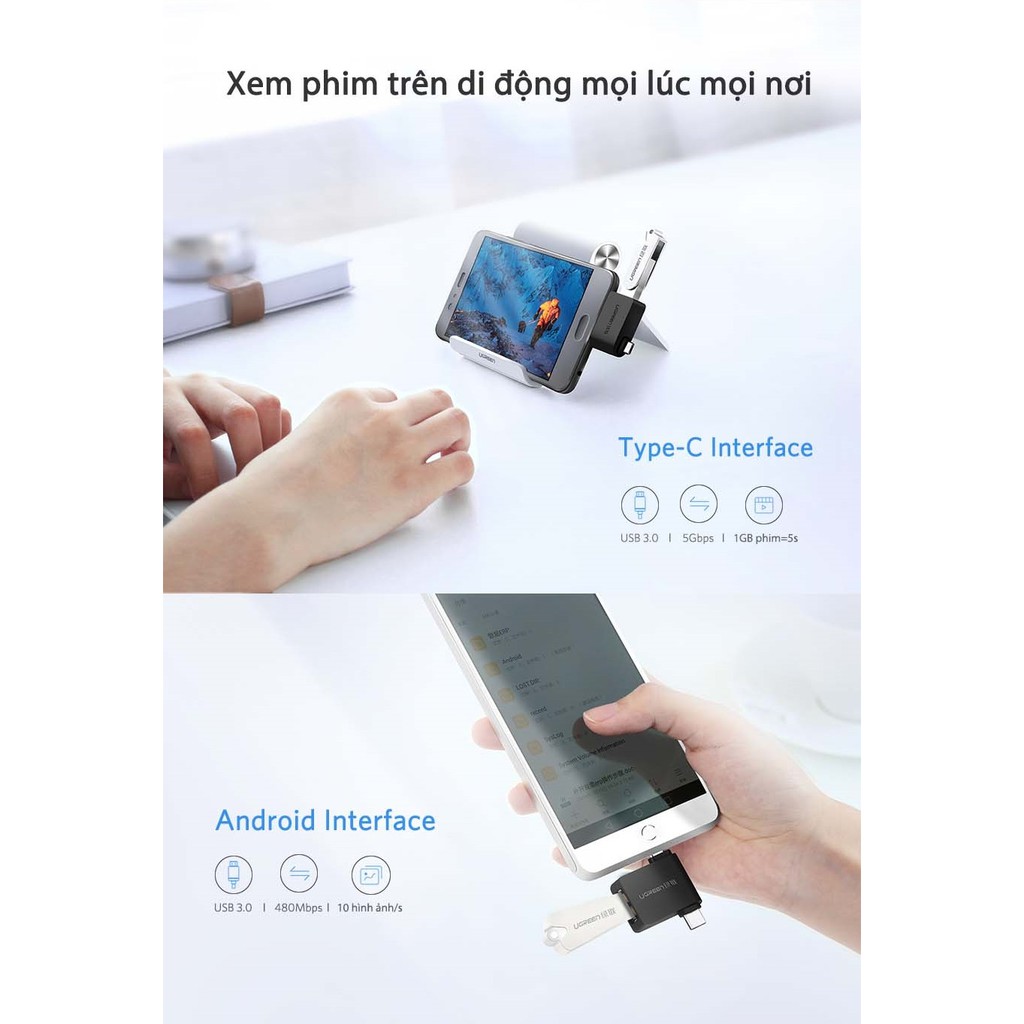 Máy tính & Laptop > Thiết Bị Lưu Trữ > USB & OTG || Đầu chuyển Micro USB + USB - C sang USB 3.0 UGREEN 30453Còn hàng