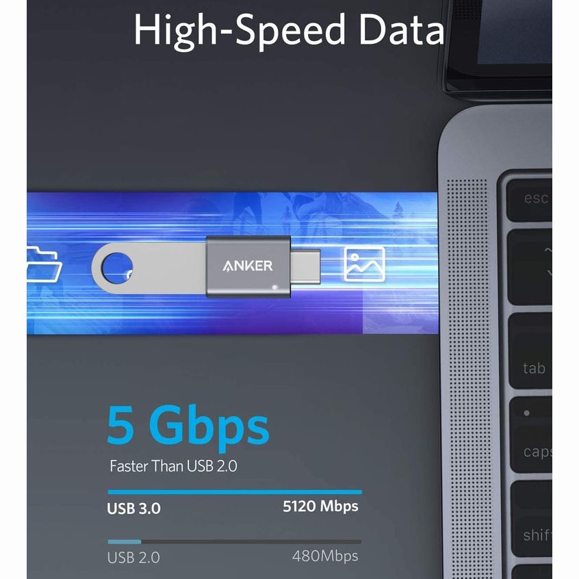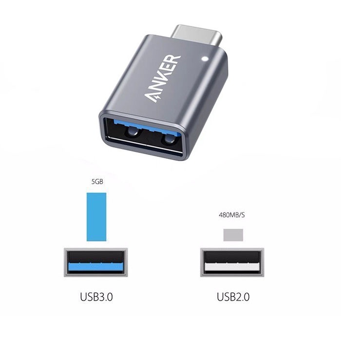 Đầu chuyển OTG Anker Type C to USB 3.0 5Gbps - A8731 Laptop Macbook Mac Samsung cắm chuột Led truyền dữ liệu tốc độ cao