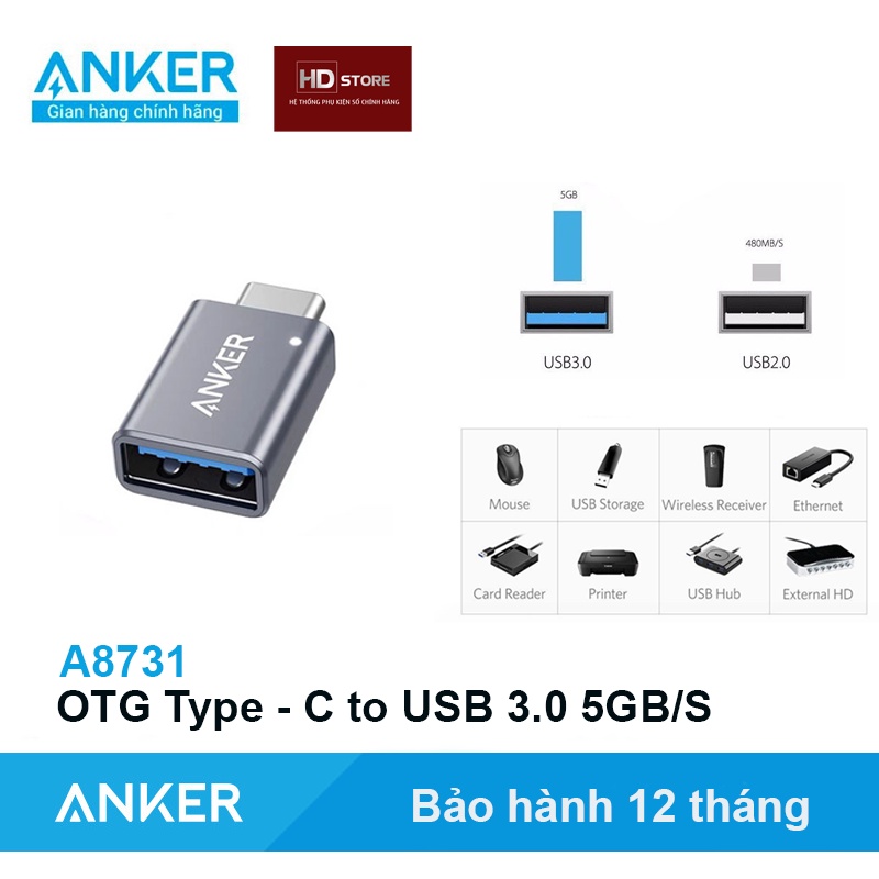 #OTG #Anker #USB3.0 #TypeC #ĐầuCắm #ĐầuChuyển #ĐầuOTG #Laptop #Macbook #Hub #HDStore #A8731