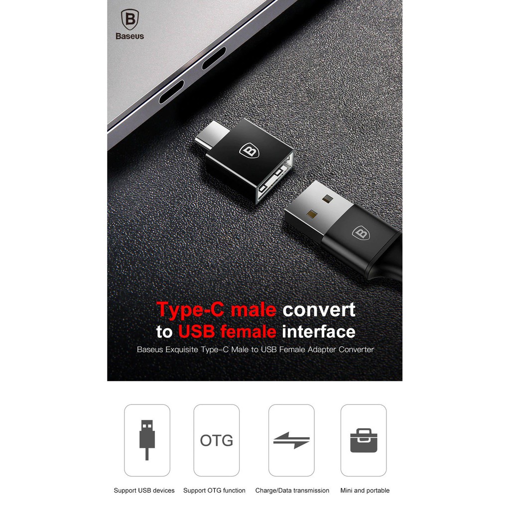 - Đầu chuyển OTG USB Type C sang USB Baseus (TYPE C Male to USB Female Cable Adapter Converter) USB Type C đang dần thay thế các chuẩn kết nối khác như Micro USB & Lightning để trở thành chuẩn kết nối phổ thông nhất trên các thiết bị di động và Apple và Samsung là 2 nhà sản xuất phần cứng đi tiên phong trong xu hướng này.