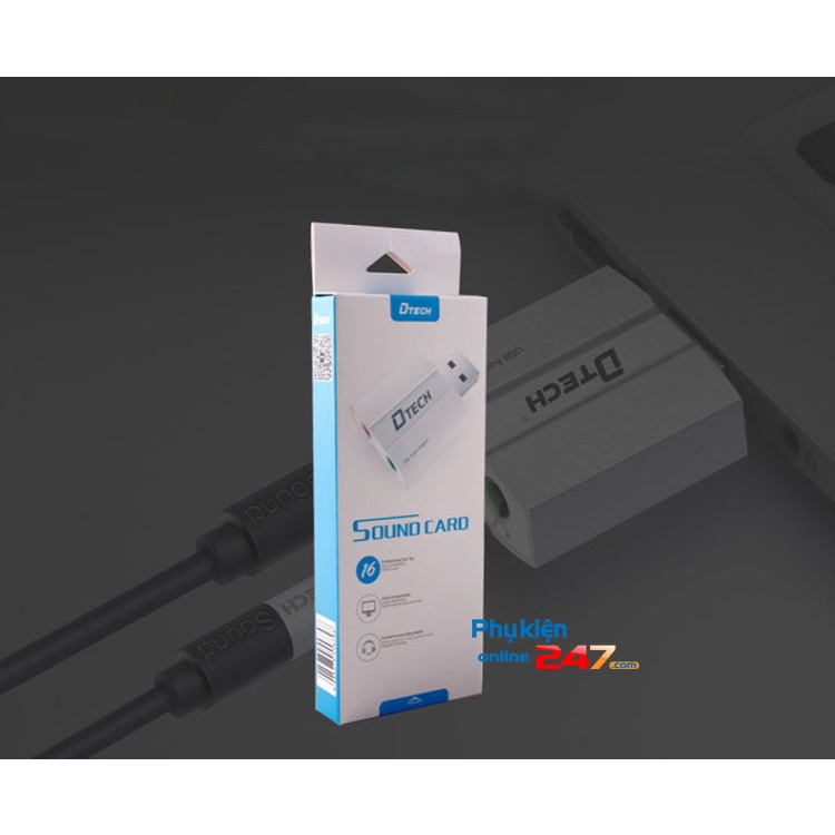 Một adapter âm thanh USB bên ngoài mới được đóng gói trong một hộp nhỏ cho bạn.