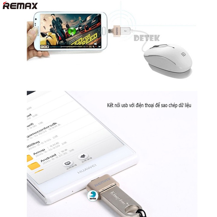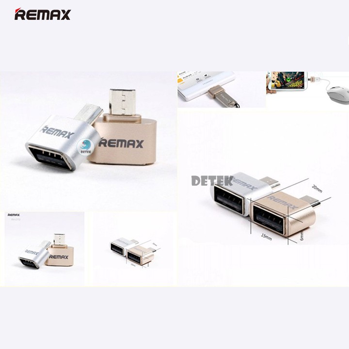 Thông số sản phẩm Đầu chuyển đổi Micro USB sang USB 2.0 Remax RA-OTG:Hãng sản xuất: Remax