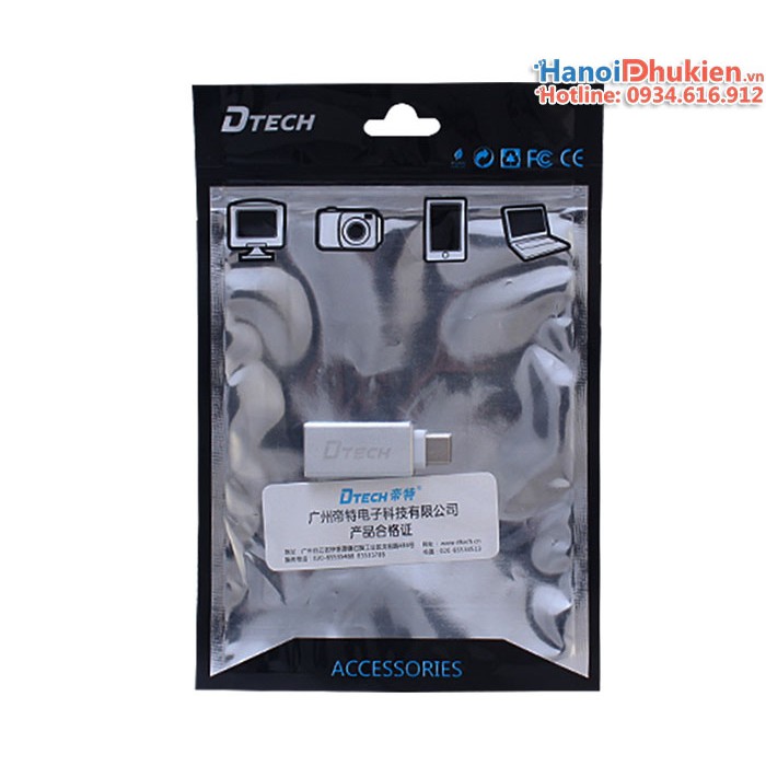 Đầu chuyển USB 3.0 sang Type C OTG Dtech T0001 vỏ nhôm AluminumĐầu chuyển đổi USB Type C sang USB 3.0 vỏ nhôm Aluminum cao cấp. Sử dụng cho các thiết bị Macbook, điện thoại, máy tính bảng có chuẩn kết nối USB Type C. Chuẩn USB-C dễ dàng cắm 2 chiều tương tự như Lightning của iPhone.