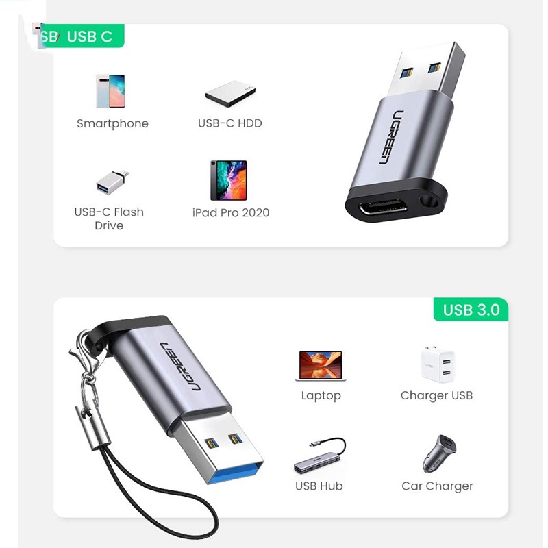 Máy tính & Laptop > Thiết Bị Lưu Trữ > USB & OTG || Đầu Chuyển USB 3.0 Sang USB C 3.1 Ugreen 50533 Chính HãngCòn hàng