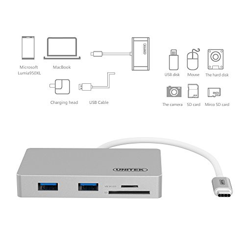 Thương hiệu unitek nổi tiếng về chất lượngĐầu Chuyển USB 3.1 USB Type-C ra đầu Hub USB 3.0 2 port và Đọc Thẻ Nhớ SD và micro SD