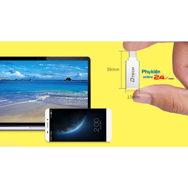 Sản phẩm chính hãng của thương hiệu Dtech, thiết kế vỏ kim loại chắc chắc, bên trên có logo Dtech in chìm.