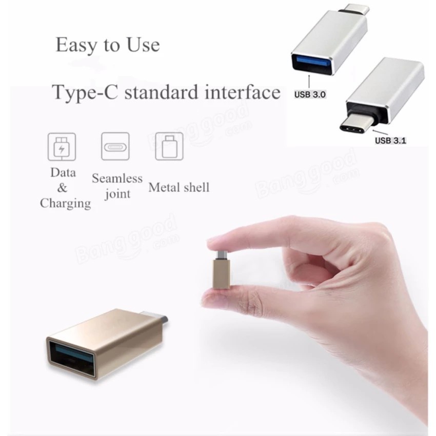 Đầu chuyển đổi USB Type C to USB 3.0 OTG.- Đầu chuyển đổi USB Type C 3.1 to USB 3.0 OTG. Sử dụng kết nối usb flash, chuột, bàn phím, ổ cứng cắm ngoài, máy in... với điện thoại hỗ trợ USB-Type C