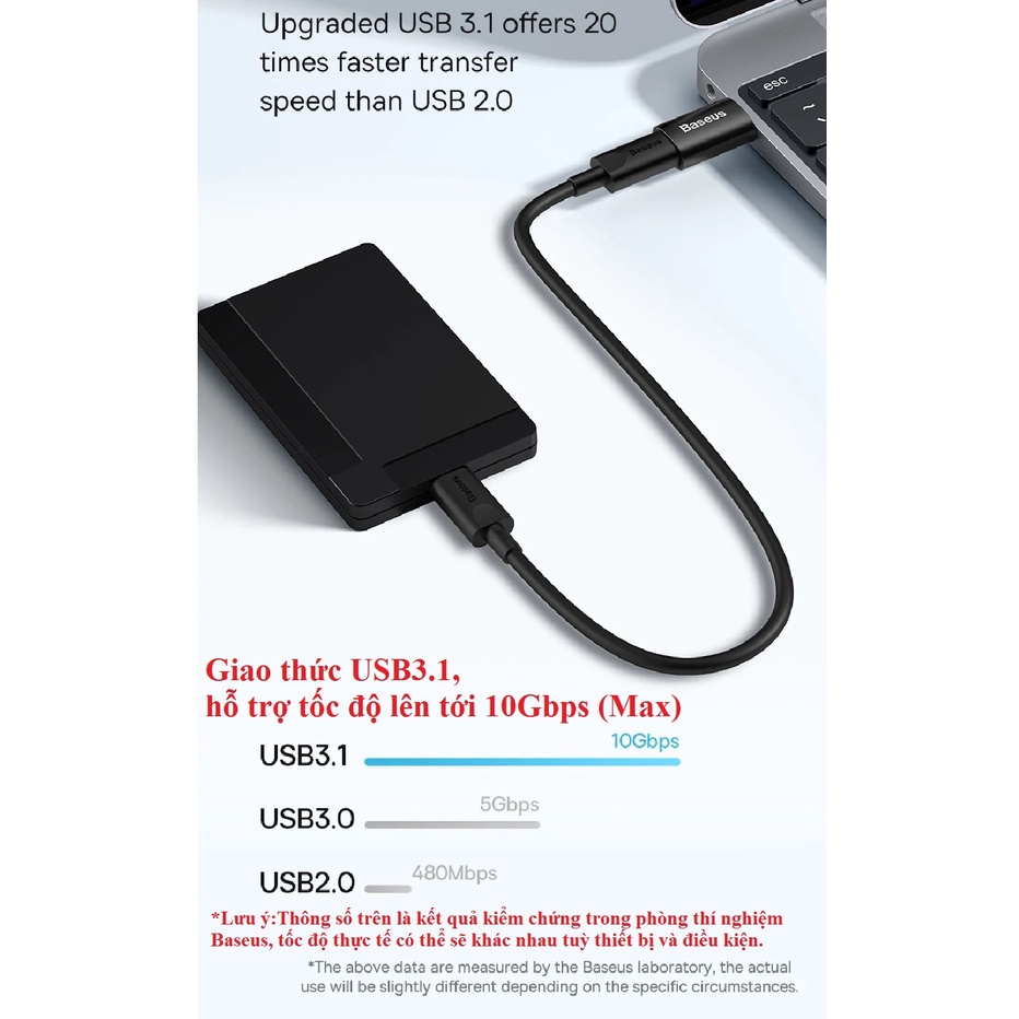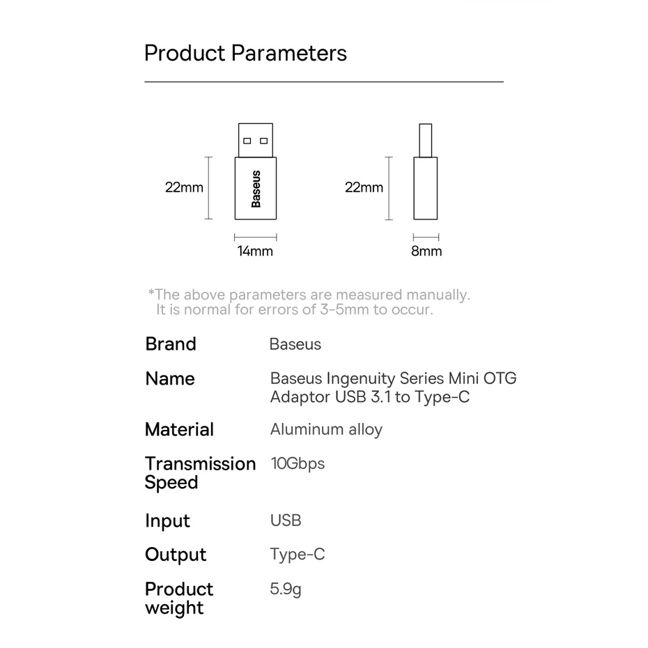 Đầu chuyển cổng USB3.1 sang type-C thương hiệu Baseus,-Tên sản phẩm: Mini OTG Adapter USB3.1 to type-C