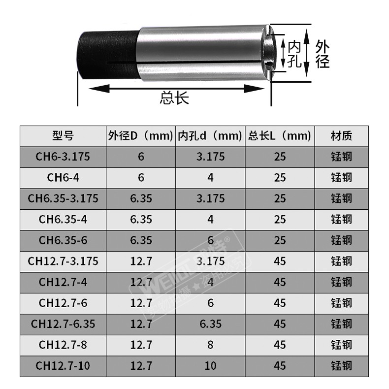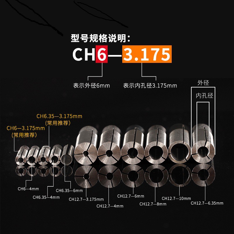 Nhà cửa & Đời sống > Dụng cụ & Thiết bị tiện ích > Dụng cụ > Khác || Đầu collet chuyển đổi 6.0-6.35-12.7mm sang 3.175-4.0-6.0-8.0mmCòn hàng
